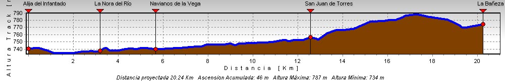 Desde Alija del Infantado los peregrinos van a recorrer las dilatadas vegas del Jamuz, río que protagoniza la primera parte de la etapa. La canalización de este curso de agua, junto a los campos de maíz ha desarrollado un pequeño ecosistema de ribera con juncos y las espadañas. Después de Villanueva del Jamuz y San Juan de Torres se regresa a las típicas llanuras castellanas con el perfil del Teleno como fondo. La llegada a La Bañeza nos descubre desde lo alto otra ciudad leonesa con cierto carácter norteño. Allí tenemos que destacar su casco histórico con buenos ejemplos de edificios modernistas y eclécticos
